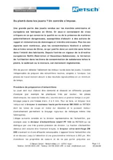 Une grande partie des jouets vendus sur les marchés américains et européens est fabriquée en Chine. Or ceux-ci connaissent de vives critiques en ce qui concerne la qualité au vu de la présence de matières potentiellement dangereuses, susceptibles d’aboutir à des actions de rappel et réclamations de dommages et intérêts onéreuses. Plus les cas signalés sont nombreux, plus les consommateurs hésitent à acheter des articles venus de Chine, ce qui justifie donc un contrôle sans failles dans l’intérêt des fabricants. Depuis l’entrée en vigueur de la directive européenne RoHS (Restriction of Hazardous Substances), la limitation de l’utilisation dans les biens de consommation de substances telles le plomb, le cadmium ou le mercure, est clairement réglementée.