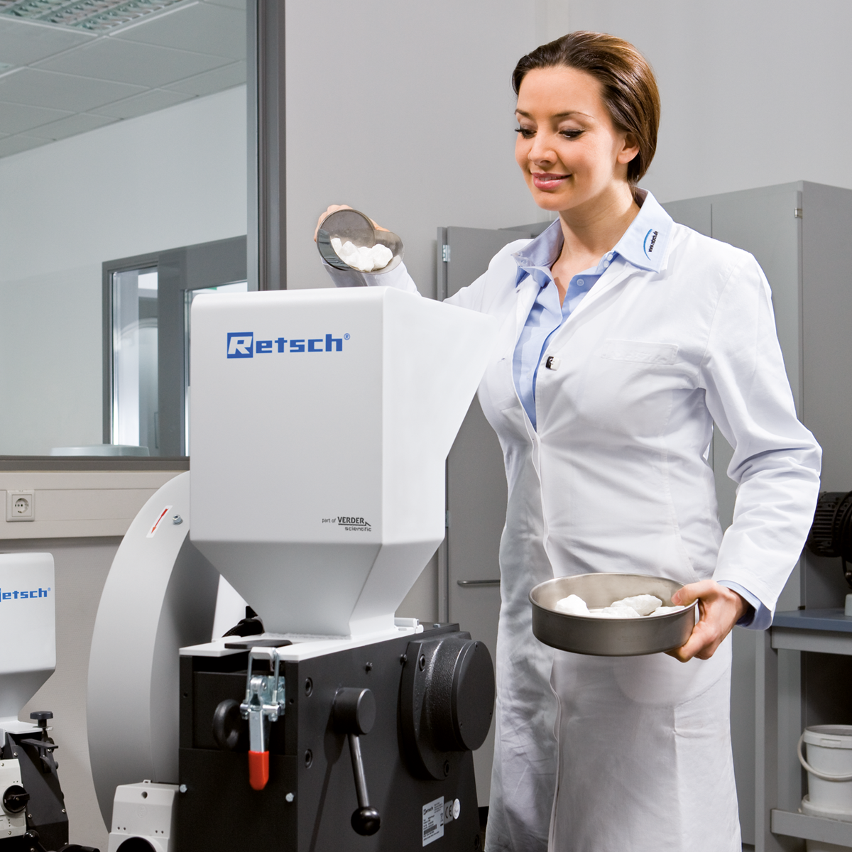 Depending on the sample material, particle sizes down to 2 mm can be obtained, resulting in a crushing ratio of 45. Its versatile usage includes continuous pre-and fine crushing in one step or process-line versions.