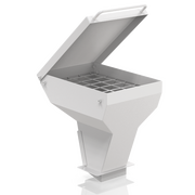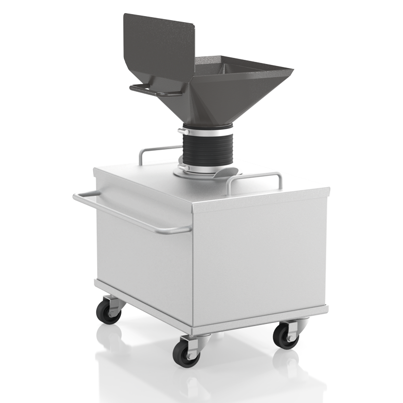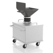 The large volume receptacle accepts up to 26 liter of sample and comes with a flexible connection flange and a carrier on wheels. This version is the best choice for dust-free operation.