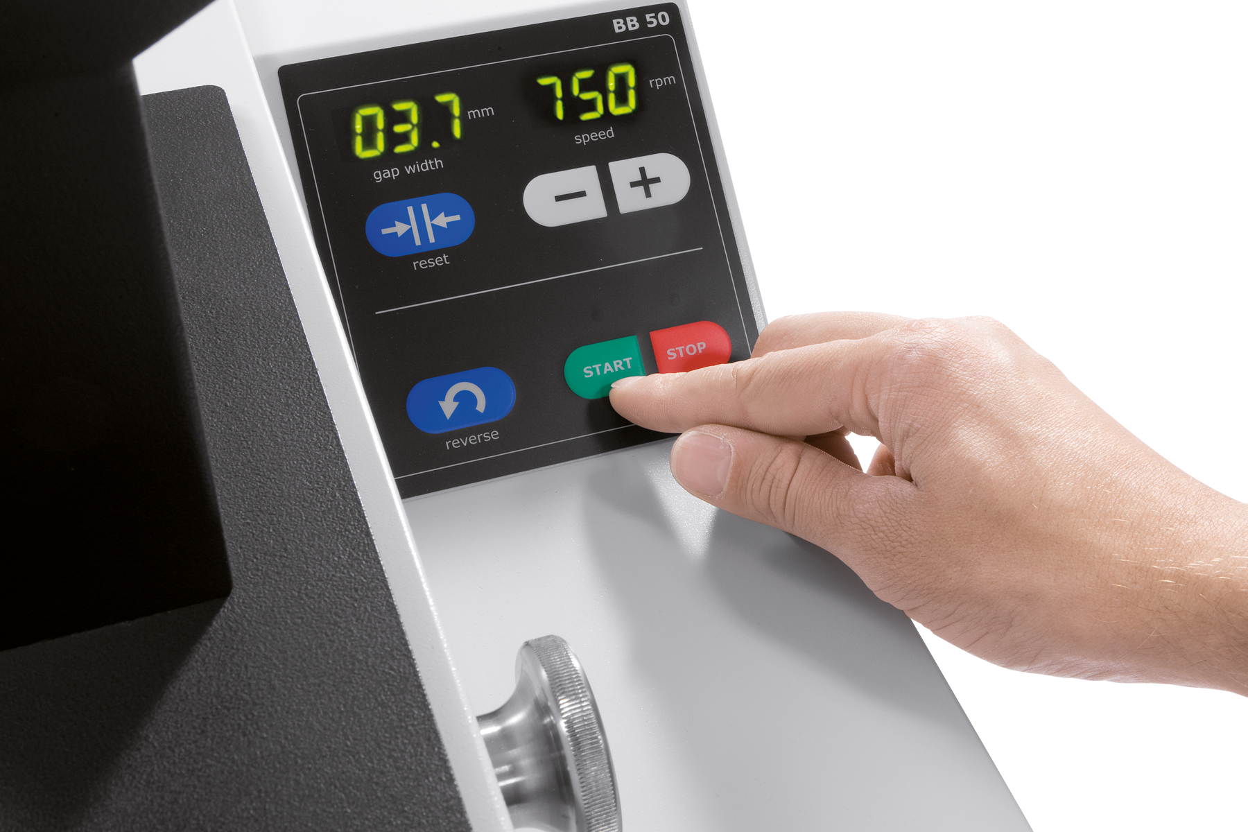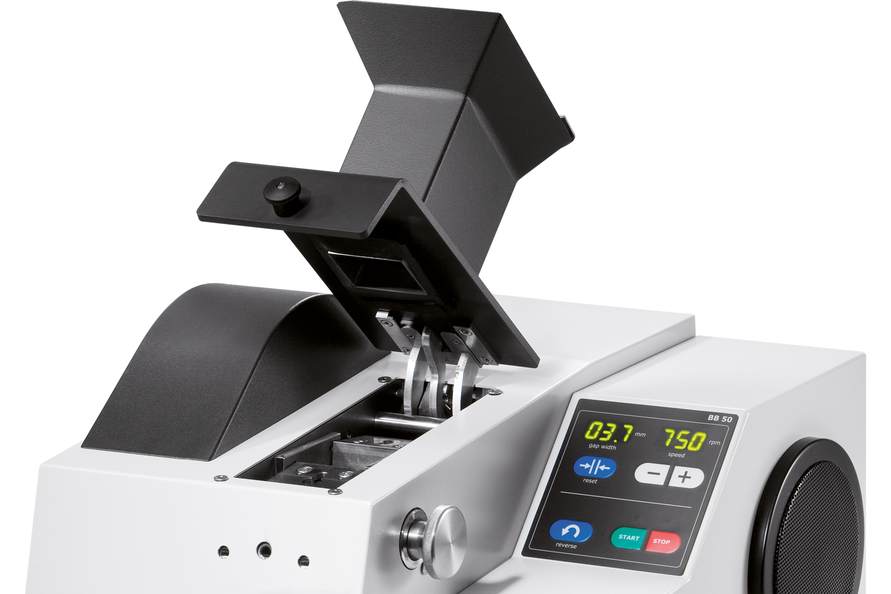 As soon as the sample is smaller than the discharge gap width, it falls into a removable collector. The continuous gap width setting with digital display ensure optimal size reduction in accordance with the set gap width value.