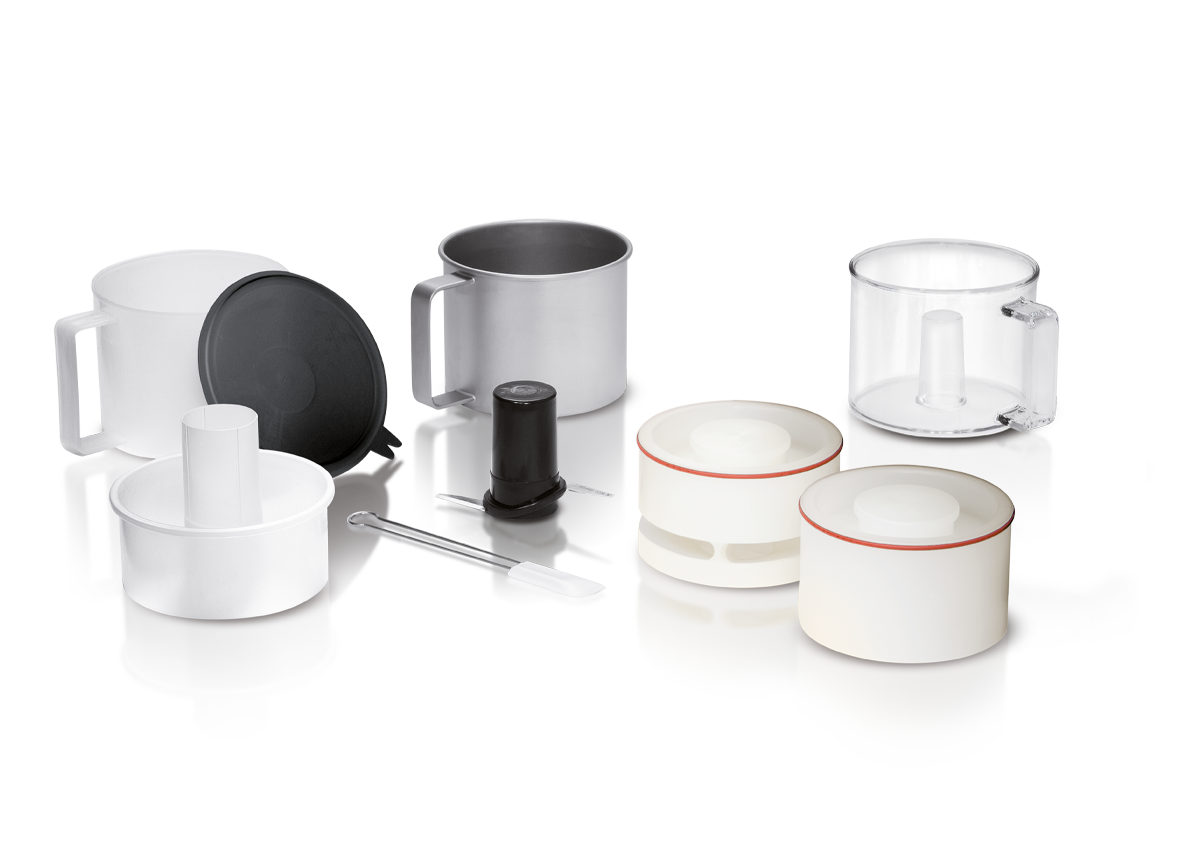 | Batch size / feed quantity: | with standard lid 700 ml // with reduction lid 150-300 ml // with gravity lid 300 - 600 ml |