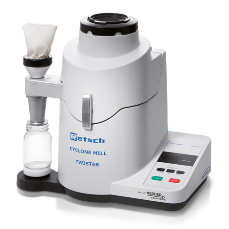 RETSCH's Cyclone Mill TWISTER is ideally suited for grinding prior to NIR analysis of cereals, corn, feed pellets, forage, pasta, pharmaceutical products, soy, rice and tobacco.